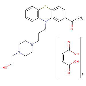 | SMILES | N1(CCCN2CCN(CCO)CC2)c3c(ccc(c3)C(=O)C)Sc4ccccc14.C(/C=C\C(=O)O)(=O)O.C(/C=C\C(=O)O)(=O)O |