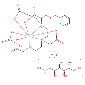 | SMILES | c1c(cccc1)COCC(C(=O)[O-])N(CC(=O)[O-])CCN(CC([O-])=O)CCN(CC(=O)[O-])CC(=O)[O-].[Gd+3].[H+].O[C@@H]([C@@H](O)[C@H](O)[C@@H](O)CNC)CO.O[C@@H]([C@@H](O)[C@H](O)[C@@H](O)CNC)CO.[H+] |