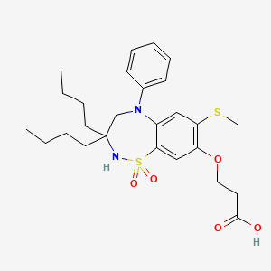 | 异名/同义词 | 3-((3,3-DIBUTYL-7-(METHYLSULFANYL)-1,1-DIOXO-5-PHENYL-2,3,4,5-TETRAHYDRO-1H-1LAMBDA6,2,5-BENZOTHIADIAZEPIN-8-YL)OXY)PROPANOIC ACID 3-((3,3-DIBUTYL-7-(METHYLSULFANYL)-1,1-DIOXO-5-PHENYL- 2,3,4,5-TETRAHYDRO-1,2,5-BENZOTHIADIAZEPIN-8-YL)OXY)PROPANOIC ACID PROPANOIC ACID, 3-((3,3-DIBUTYL-2,3,4,5-TETRAHYDRO-7-(METHYLTHIO)-1,1-DIOXIDO-5-PHENYL-1,2,5-BENZOTHIADIAZEPIN-8-YL)OXY)- RITIVIXIBAT RITIVIXIBAT [INN]