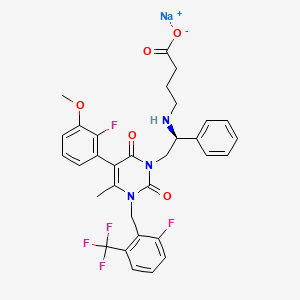 BUTANOIC ACID, 4-(((1S)-2-(5-(2-FLUORO-3-METHOXYPHENYL)-3-((2-FLUORO-6-(TRIFLUOROMETHYL)PHENYL)METHYL)-3,6-DIHYDRO-4-METHYL-2,6-DIOXO-1(2H)-PYRIMIDINYL)-1-PHENYLETHYL)AMINO)-, SODIUM SALT (1:1)