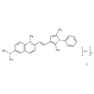 | SMILES | [Cl-].n1(c(cc(c1C)/C=C/c2[n+](c3c(cc(cc3)N(C)C)cc2)C)C)-c4ccccc4.O.O |