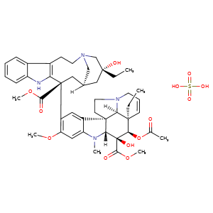 c12ccccc1[nH]c3c2CC[N@@]4C[C@@H](C[C@@](O)(C4)CC)C[C@]3(C(=O)OC)c5cc6[C@@]78[C@](N(c6cc5OC)C)([H])[C@@](O)(C(OC)=O)[C@H](OC(=O)C)[C@@]9(CC)[C@@]7(N(CC=C9)CC8)[H].S(=O)(O)(=O)O
