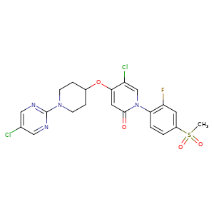 O=c1cc(OC2CCN(c3ncc(Cl)cn3)CC2)c(Cl)cn1-c4ccc(S(C)(=O)=O)cc4F