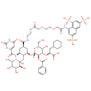 c1(cc(cc2cc(cc(c12)NC(COCCOCC(NCCNC(=O)[C@H]3C[C@H]([C@@H]([C@H](C3)NC(=O)c4[nH]c([nH]c(c4)=O)=O)O[C@]5([C@@H](O)[C@H](O)[C@H](O)[C@@H](O5)C)[H])O[C@]6([C@H](OC(c7ccccc7)=O)[C@@H](O[C@@H](CC8CCCCC8)C(=O)O)[C@@H](O)[C@H](O6)CO)[H])=O)=O)S(=O)(=O)O)S(=O)(=O)O)S(=O)(=O)O
