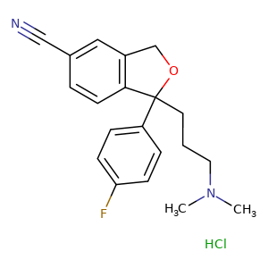 | SMILES | CN(C)CCCC1(c2ccc(cc2)F)OCc3cc(ccc31)C#N.Cl |