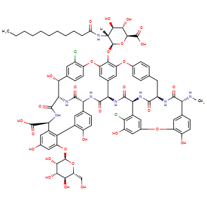 | SMILES | [C@H]12NC([C@H](NC([C@@H]3NC([C@@H]4c5c(c(O)cc(Oc6cc([C@H](C(N[C@@H](C(N4)=O)Cc7ccc(Oc8cc3cc(c8O[C@H]9[C@@]([C@H]([C@H](O)[C@H](O9)C(=O)O)O)(NC(=O)CCCCCCCCCC)[H])Oc%10ccc([C@H]1O)cc%10Cl)cc7)=O)NC)ccc6O)c5)Cl)=O)=O)c%11cc(-c%12c([C@H](NC2=O)C(=O)O)cc(cc%12O[C@@H]%13[C@H]([C@H]([C@H](O)[C@H](O%13)CO)O)O)O)c(O)cc%11)=O |