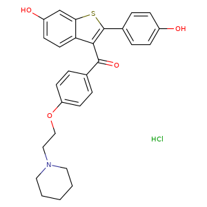 | SMILES | c1(c(sc2c1ccc(O)c2)-c3ccc(cc3)O)C(c4ccc(cc4)OCCN5CCCCC5)=O.Cl |