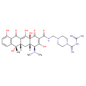 | SMILES | C1([C@]2(C(=C3[C@](C[C@]2([C@H](N(C)C)C(O)=C1C(NCN4CCN(CC4)C(NC(=N)N)=N)=O)[H])([C@](c5c(C3=O)c(ccc5)O)(C)O)[H])O)O)=O |