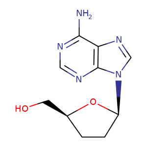 | SMILES | n1(c2c(c(ncn2)N)nc1)[C@@H]3O[C@H](CO)CC3 |