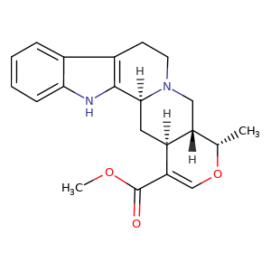 | SMILES | c12c(c3ccccc3[nH]1)CCN4[C@]2(C[C@@]5(C(=CO[C@H]([C@@]5([H])C4)C)C(=O)OC)[H])[H] |