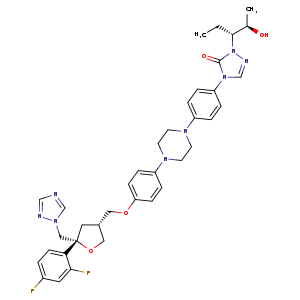 | 异名/同义词 | 2,5-ANHYDRO-1,3,4-TRIDEOXY-2-C-(2,4-DIFLUOROPHENYL)-4-((4-(4-(4-(1-((1R,2R)-1-ETHYL-2-HYDROXYPROPYL)-1,5-DIHYDRO-5-OXO-4H-1,2,4-TRIAZOL-4-YL)PHENYL)-1-PIPERAZINYL)PHENOXY)METHYL)-1-(1H-1,2,4-TRIAZOL-1-YL)-D-THREO-PENTITOL 4-(4-(4-(4-(((3R,5R)-5-(2,4-DIFLUOROPHENYL)-5-(1,2,4-TRIAZOL-1-YLMETHYL)OXOLAN-3-YL)METHOXY)PHENYL)PIPERAZIN-1-YL)PHENYL)-2-((2R,3R)-2-HYDROXYPENTAN-3-YL)-1,2,4-TRIAZOL-3-ONE ALL-(R)-(-)-POSACONAZOLE D-THREO-PENTITOL, 2,5-ANHYDRO-1,3,4-TRIDEOXY-2-C-(2,4-DIFLUOROPHENYL)-4-((4-(4-(4-(1-((1R,2R)-1-ETHYL-2-HYDROXYPROPYL)-1,5-DIHYDRO-5-OXO-4H-1,2,4-TRIAZOL-4-YL)PHENYL)-1-PIPERAZINYL)PHENOXY)METHYL)-1-(1H-1,2,4-TRIAZOL-1-YL)- POSACONAZOLE, ALL-(R)-