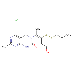 | SMILES | Cl.n1c(c(CN(/C(=C(/SSCCC)\CCO)/C)C=O)cnc1C)N |