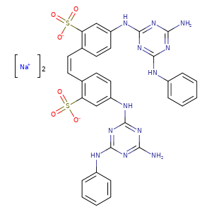 [Na+].C(=C\c1c(S(=O)(=O)[O-])cc(Nc2nc(Nc3ccccc3)nc(N)n2)cc1)\c4c(S(=O)(=O)[O-])cc(Nc5nc(Nc6ccccc6)nc(N)n5)cc4.[Na+]