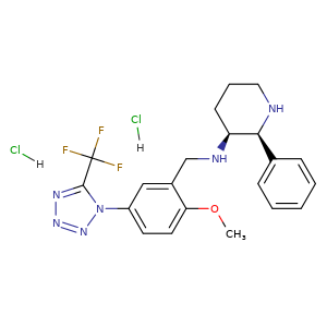 c1(nnnn1-c2cc(CN[C@@H]3[C@@H](NCCC3)c4ccccc4)c(cc2)OC)C(F)(F)F.Cl.Cl