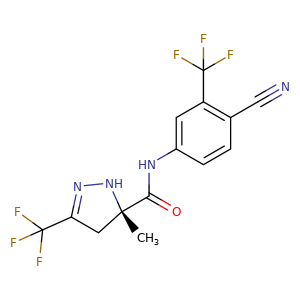| 异名/同义词 | (3S)-3-METHYL-5-TRIFLUOROMETHYL-3,4-DIHYDRO-2H-PYRAZOLE-3-CARBOXYLIC ACID N-(4-CYANO-3-TRIFLUOROMETHYLPHENYL)AMIDE (S)-3-METHYL-5-TRIFLUOROMETHYL-3,4-DIHYDRO-2H-PYRAZOLE-3-CARBOXYLIC ACID N-(4-CYANO-3-TRIFLUOROMETHYLPHENYL)AMIDE 1H-PYRAZOLE-5-CARBOXAMIDE, N-(4-CYANO-3-(TRIFLUOROMETHYL)PHENYL)-4,5-DIHYDRO-5-METHYL-3-(TRIFLUOROMETHYL)-, (5S)- JNJ-28330835