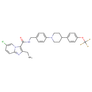 | SMILES | c1(Cl)ccc2nc(CC)c(C(=O)NCc3ccc(N4CCC(c5ccc(OC(F)(F)F)cc5)CC4)cc3)n2c1 |