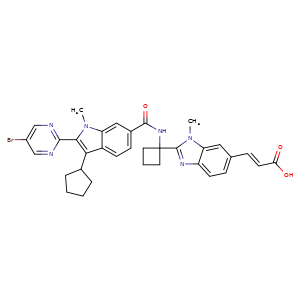 | SMILES | C(/C=C/c1ccc2nc(n(c2c1)C)C3(CCC3)NC(=O)c4ccc5c(c(n(c5c4)C)-c6ncc(cn6)Br)C7CCCC7)(=O)O |
