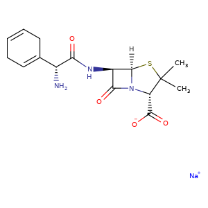 | SMILES | N12[C@@]([C@H](NC([C@@H](C=3CC=CCC3)N)=O)C1=O)(SC([C@@H]2C(=O)[O-])(C)C)[H].[Na+] |
