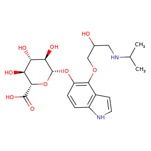 [C@@H]1([C@H](Oc2c(c3cc[nH]c3cc2)OCC(CNC(C)C)O)O[C@@H]([C@H]([C@@H]1O)O)C(O)=O)O