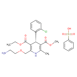 | SMILES | C=1([C@@H](c2c(Cl)cccc2)C(C(=O)OCC)=C(NC1C)COCCN)C(=O)OC.S(=O)(=O)(c1ccccc1)O |