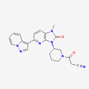 | 异名/同义词 | (3S)-3-(1,2-DIHYDRO-1-METHYL-2-OXO-5-PYRAZOLO(1,5-A)PYRIDIN-3-YL-3H-IMIDAZO(4,5-B)PYRIDIN-3-YL)-.BETA.-OXO-1-PIPERIDINEPROPANENITRILE 1-PIPERIDINEPROPANENITRILE, 3-(1,2-DIHYDRO-1-METHYL-2-OXO-5-PYRAZOLO(1,5-A)PYRIDIN-3-YL-3H-IMIDAZO(4,5-B)PYRIDIN-3-YL)-.BETA.-OXO-, (3S)- 3-((3S)-3-(1-METHYL-2-OXO-5-(PYRAZOLO(1,5-A)PYRIDIN-3-YL)-1,2-DIHYDRO-3H-IMIDAZO(4,5-B)PYRIDIN-3-YL)PIPERIDIN-1-YL)-3-OXOPROPANENITRILE FREVECITINIB FREVECITINIB [INN] FREVECITINIB [USAN] KN002 KN-002