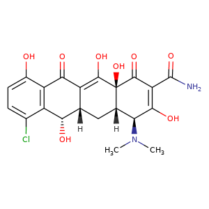 | SMILES | [C@@]12(C(=C3C(c4c(ccc(c4[C@H]([C@]3(C[C@]1([C@@H](C(O)=C(C2=O)C(=O)N)N(C)C)[H])[H])O)Cl)O)=O)O)O |