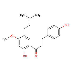 1-(2-HYDROXY-4-METHOXY-5-(3-METHYLBUT-2-ENYL)PHENYL)-3-(4-HYDROXYPHENYL)PROPAN-1-ONE 1-PROPANONE, 1-(2-HYDROXY-4-METHOXY-5-(3-METHYL-2-BUTEN-1-YL)PHENYL)-3-(4-HYDROXYPHENYL)- TONKINOCHROMANE L
