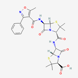 | 异名/同义词 | 2S,5R,6R)-6-(((2S,5R,6R)-3,3-DIMETHYL-6-(((5-METHYL-3-PHENYLISOXAZOL-4-YL)CARBONYL)AMINO)-7-OXO-4-THIA-1-AZABICYCLO(3.2.0)HEPTANE-2-CARBONYL)AMINO)-3,3-DIMETHYL-7-OXO-4-THIA-1-AZABICYCLO(3.2.0)HEPTANE-2-CARBOXYLIC ACID 6-APA OXACILLIN AMIDE OXACILLIN SODIUM MONOHYDRATE IMPURITY I [EP IMPURITY]