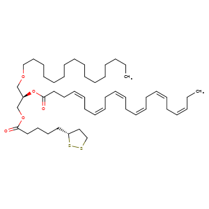 | 异名/同义词 | 1,2-DITHIOLANE-3-PENTANOIC ACID, (2R)-2-(((4Z,7Z,10Z,13Z,16Z,19Z)-1-OXO-4,7,10,13,16,19-DOCOSAHEXAEN-1-YL)OXY)-3-((1-OXOHEXADECYL)OXY)PROPYL ESTER, (3R)- 1,2-DITHIOLANE-3-PENTANOIC ACID, 3-(HEXADECYLOXY)-2-(((4Z,7Z,10Z,13Z,16Z,19Z)-1-OXO-4,7,10,13,16,19-DOCOSAHEXAEN-1-YL)OXY)PROPYL ESTER, (3R)- PPI-1011