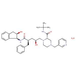 | 异名/同义词 | (.ALPHA.R,.GAMMA.S,2S)-.ALPHA.-BENZYL-2-(TERT-BUTYLCARBAMOYL)-.GAMMA.-HYDROXY-N-((1S,2R)-2-HYDROXY-1-INDANYL)-4-(3-PYRIDYLMETHYL)-1-PIPERAZINEVALERAMIDE MONOHYDRATE D-ERYTHRO-PENTONAMIDE, 2,3,5-TRIDEOXY-N-(2,3-DIHYDRO-2-HYDROXY-1H-INDEN-1-YL)-5-(2-(((1,1-DIMETHYLETHYL)AMINO)CARBONYL)-4-(3-PYRIDINYLMETHYL)-1-PIPERAZINYL)-2-(PHENYLMETHYL)-, MONOHYDRATE, (1(1S,2R),5(S))- INDINAVIR INDINAVIR MONOHYDRATE INDINAVIR SYSTEM SUITABILITY INDINAVIR SYSTEM SUITABILITY [USP-RS] INDINAVIR [USAN] INDINAVIR [USP-RS] INDINAVIR [VANDF] INDINAVIR MONOHYDRATE [WHO-DD]