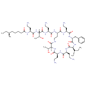 | 异名/同义词 | 7-ISOLEUCINE-POLYMYXIN B1 L-THREONINE, (2S)-4-AMINO-2-(((6S)-6-METHYL-1-OXOOCTYL)AMINO)BUTANOYL-L-THREONYL-(2S)-2,4-DIAMINOBUTANOYL-(2S)-2,4-DIAMINOBUTANOYL-(2S)-2,4-DIAMINOBUTANOYL-D-PHENYLALANYL-L-ISOLEUCYL-(2S)-2,4-DIAMINOBUTANOYL-(2S)-2,4-DIAMINOBUTANOYL-, (10->4)-LACTAM POLYMYXIN B1-I