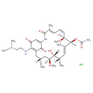| 异名/同义词 | (4E,6Z,8S,9S,10E,12S,13R,14S,16R)-19-((2-(DIMETHYLAMINO)ETHYL)AMINO)-13-HYDROXY-8,14-DIMETHOXY-4,10,12,16-TETRAMETHYL-3,20,22-TRIOXO-2-AZABICYCLO(16.3.1)DOCOSA-1(21),4,6,10,18-PENTAEN-9-YL CARBAMATE HYDROCHLORIDE 17-DMAG HCL ALVESPIMYCIN HCL ALVESPIMYCIN HYDROCHLORIDE ALVESPIMYCIN HYDROCHLORIDE [USAN] ALVESPIMYCIN HYDROCHLORIDE [WHO-DD] BMS-826476 GELDANAMYCIN, 17-DEMETHOXY-17-((2-(DIMETHYLAMINO)ETHYL)AMINO)-, MONOHYDROCHLORIDE KOS-1022