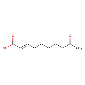 | 异名/同义词 | (2E)-9-OXO-2-DECENOIC ACID (E)-9-KETO-2-DECENOIC ACID (E)-9-OXO-2-DECENOIC ACID (E)-9-OXODECENOIC ACID 2-DECENOIC ACID, 9-OXO-, (E)- 2-DECENOIC ACID, 9-OXO-, TRANS- 9-OXO-2-DECENOIC ACID, (2E)- 9-OXO-2E-DECENOIC ACID QUEEN SUBSTANCE QUEEN SUBSTANCE [MI] TRANS-9-KETO-2-DECENOIC ACID TRANS-9-OXO-2-DECENOIC ACID
