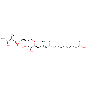 | 异名/同义词 | 6-CARBOXYHEXYL (2E)-5,9-ANHYDRO-2,3,4,8-TETRADEOXY-8-(((2S,3S)-3-((1S,2S)-2-HYDROXY-1-METHYLPROPYL)-2-OXIRANYL)METHYL)-3-METHYL-L-TALO-NON-2-ENONATE 7-(((2E)-4-((2S,3R,4R,5S)-3,4-DIHYDROXY-5-(((2S,3S)-3-((1S,2S)-2-HYDROXY-1-METHYLPROPYL)OXIRANYL)METHYL)TETRAHYDRO-2H-PYRAN-2-YL)-3-METHYLBUT-2-ENOYL)OXY)HEPTANOIC ACID DE(8-CARBOXYOCTYL) 6-CARBOXYHEXYL MUPIROCIN DE(8-CARBOXYOCTYL)6-CARBOXYHEXYLMUPIROCIN L-TALO-NON-2-ENONIC ACID, 5,9-ANHYDRO-2,3,4,8-TETRADEOXY-8-((3-(2-HYDROXY-1-METHYLPROPYL)OXIRANYL)METHYL)-3-METHYL-, 6-CARBOXYHEXYL ESTER, (2E,8(2S,3S(1S,2S)))- MUPIROCIN CALCIUM IMPURITY F [EP IMPURITY] MUPIROCIN IMPURITY F [EP IMPURITY] PSEUDOMONIC ACID F