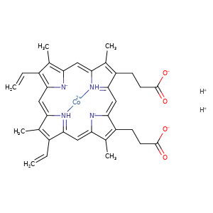 | 异名/同义词 | 21H,23H-PORPHINE-2,18-DIPROPANOIC ACID, 7,12-DIETHENYL-3,8,13,17-TETRAMETHYL-, COBALT COMPLEX COBALT PROTOPORPHYRIN COBALT PROTOPORPHYRIN IX COBALT PROTOPORPHYRIN [JAN] COBALT(II) PROTOPORPHYRIN IX COBALT, (DIHYDROGEN 3,7,12,17-TETRAMETHYL-8,13-DIVINYL-2,18-PORPHINEDIPROPIONATO(2-))- COBALT, (DIHYDROGEN PROTOPORPHYRIN IX-ATO(2-))- COBALT-HEME COBALTATE(2-), (7,12-DIETHENYL-3,8,13,17-TETRAMETHYL-21H,23H-PORPHINE-2,18-DIPROPANOATO(4-)-.KAPPA.N21,.KAPPA.N22,.KAPPA.N23,.KAPPA.N24)-, DIHYDROGEN, (SP-4-2)- COBALTATE(2-), (7,12-DIETHENYL-3,8,13,17-TETRAMETHYL-21H,23H-PORPHINE-2,18-DIPROPANOATO(4-)-.KAPPA.N21,.KAPPA.N22,.KAPPA.N23,.KAPPA.N24)-, HYDROGEN (1:2), (SP-4-2)- COBALTATE(2-), (7,12-DIETHENYL-3,8,13,17-TETRAMETHYL-21H,23H-PORPHINE-2,18-DIPROPANOATO(4-)-N21,N22,N23,N24)-, DIHYDROGEN, (SP-4-2)- NSC-267101