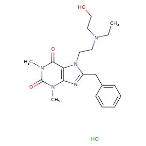| SMILES | c12c(c(=O)n(c(n1C)=O)C)n(CCN(CCO)CC)c(n2)Cc3ccccc3.Cl |