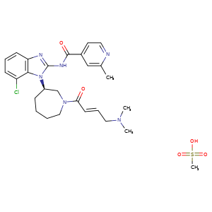 | SMILES | S(C)(=O)(=O)O.c1cc(Cl)c2n([C@@H]3CCCCN(C(=O)/C=C/CN(C)C)C3)c(NC(=O)c4cc(C)ncc4)nc2c1 |