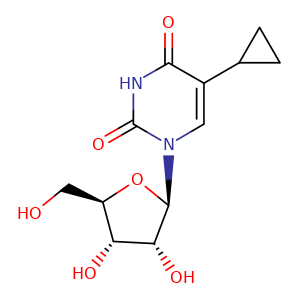 OC[C@@H]1[C@H]([C@H]([C@@H](O1)n2c([nH]c(c(c2)C3CC3)=O)=O)O)O