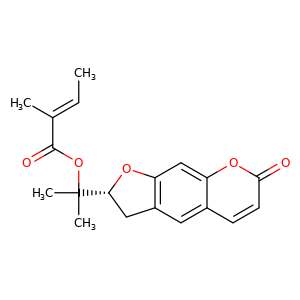 | 异名/同义词 | 2-BUTENOIC ACID, 2-METHYL-, 1-((2R)-2,3-DIHYDRO-7-OXO-7H-FURO(3,2-G)(1)BENZOPYRAN-2-YL)-1-METHYLETHYL ESTER, (2E)- 2-BUTENOIC ACID, 2-METHYL-, 1-(2,3-DIHYDRO-7-OXO-7H-FURO(3,2-G)(1)BENZOPYRAN-2-YL)-1-METHYLETHYL ESTER, (R-(E))- NODAKENETIN TIGLATE SPRENGELIANINE, (+)- SPRENGELIANINE, (R)-