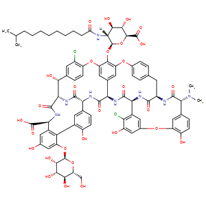 | SMILES | [C@H]12NC([C@H](NC([C@@H]3NC([C@@H]4c5c(c(O)cc(Oc6cc([C@H](C(N[C@@H](C(N4)=O)Cc7ccc(Oc8cc3cc(c8O[C@H]9[C@@]([C@H]([C@H](O)[C@H](O9)C(=O)O)O)(NC(=O)CCCCCCCCC(C)C)[H])Oc%10ccc([C@H]1O)cc%10Cl)cc7)=O)N(C)C)ccc6O)c5)Cl)=O)=O)c%11cc(-c%12c([C@H](NC2=O)C(=O)O)cc(cc%12O[C@@H]%13[C@H]([C@H]([C@H](O)[C@H](O%13)CO)O)O)O)c(O)cc%11)=O |