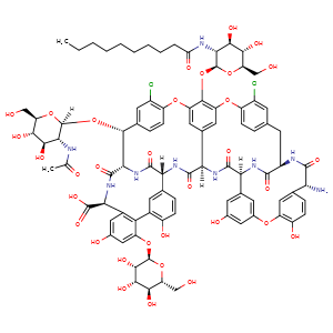 | SMILES | C(CC)CCCCCCC(=O)N[C@H]1[C@H](Oc2c3cc4[C@](C(N[C@@]5(c6cc(-c7c([C@H](NC([C@H]([C@@H](c8cc(c(O3)cc8)Cl)O[C@]9([C@@H]([C@H]([C@H](O)[C@H](O9)CO)O)NC(C)=O)[H])NC5=O)=O)C(=O)O)cc(O)cc7O[C@H]%10O[C@@H]([C@@H](O)[C@@H]([C@@H]%10O)O)CO)c(cc6)O)[H])=O)(NC([C@@]%11(c%12cc(Oc%13cc(ccc%13O)[C@H](C(N[C@@H](C(N%11)=O)Cc%14cc(c(Oc2c4)cc%14)Cl)=O)N)cc(c%12)O)[H])=O)[H])O[C@@H]([C@@H](O)[C@@H]1O)CO |
