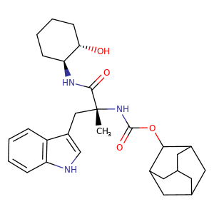| 异名/同义词 | CARBAMIC ACID, ((1R)-2-(((1S,2S)-2-HYDROXYCYCLOHEXYL)AMINO)-1-(1H-INDOL-3-YLMETHYL)-1-METHYL-2-OXOETHYL)-, TRICYCLO(3.3.1.13,7)DEC-2-YL ESTER CARBAMIC ACID, (2-((2-HYDROXYCYCLOHEXYL)AMINO)-1-(1H-INDOL-3-YLMETHYL)-1-METHYL-2-OXOETHYL)-, TRICYCLO(3.3.1.13,7)DEC-2-YL ESTER, (1S-(1.ALPHA.(S*),2.BETA.))- CARBAMIC ACID, N-((1R)-2-(((1S,2S)-2-HYDROXYCYCLOHEXYL)AMINO)-1-(1H-INDOL-3-YLMETHYL)-1-METHYL-2-OXOETHYL)-, TRICYCLO(3.3.1.13,7)DEC-2-YL ESTER CI-1015 PD-144598