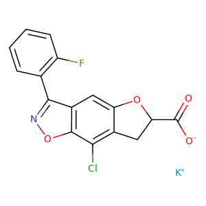 [K+].c1(-c2c(F)cccc2)c3cc4CC(C([O-])=O)Oc4c(Cl)c3on1