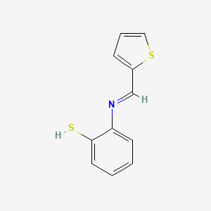 | 异名/同义词 | 2-(THIOPHEN-2-YLMETHYLIDENEAMINO)BENZENETHIOL 2-THENYLIDENE-2-AMINOTHIOPHENOL 2-((2-THIENYLMETHYLENE)AMINO)BENZENETHIOL 2-((E)-(2-THIENYLMETHYLENE)AMINO)BENZENETHIOL BENZENETHIOL, 2-((E)-(2-THIENYLMETHYLENE)AMINO)- BENZENETHIOL, O-(2-THENYLIDENEAMINO)- NSC-270713