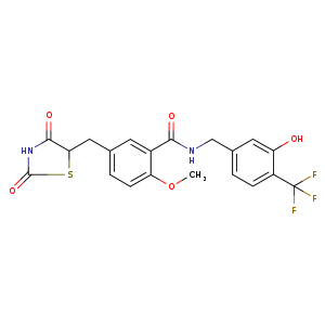 | SMILES | N1C(C(Cc2ccc(c(C(=O)NCc3ccc(c(c3)O)C(F)(F)F)c2)OC)SC1=O)=O |
