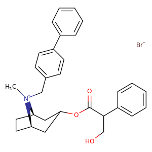| SMILES | C1C[C@@H]2CC(C[C@@H]1[N+]2(C)Cc3ccc(cc3)-c4ccccc4)OC(C(c5ccccc5)CO)=O.[Br-] |