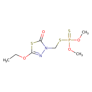 | 异名/同义词 | GEIGY GS-12968 GEIGY-12968 GS-12968 LYTHIDATHION LYTHIDATHION [ISO] O,O-DIMETHYL S-(5-ETHOXY-1,3,4-THIADIAZOL-2(3H)-ONYL-(3)-METHYL) DITHIOPHOSPHATE OMS-958 PHOSPHORODITHIOIC ACID, O,O-DIMETHYL ESTER, S-ESTER WITH 2-ETHOXY-4-(MERCAPTOMETHYL)-.DELTA.2-1,3,4-THIADIAZOLIN-5-ONE PHOSPHORODITHIOIC ACID, S-((5-ETHOXY-2-OXO-1,3,4-THIADIAZOL-3(2H)-YL)METHYL) O,O-DIMETHYL ESTER S-((5-ETHOXY-2-OXO-1,3,4-THIADIAZOL-3(2H)-YL)METHYL) O,O-DIMETHYL PHOSPHORODITHIOATE S-5-ETHOXY-2,3-DIHYDRO-2-OXO-1,3,4-THIADIAZOL-3-YLMETHYL O,O-DIMETHYL PHOSPHORODITHIOATE