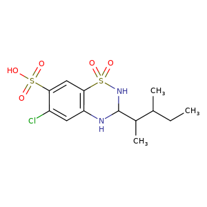 | SMILES | c1(S(N)(=O)=O)c(cc2NC(NS(c2c1)(=O)=O)C(C(CC)C)C)Cl |