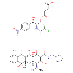 | 异名/同义词 | BUTANEDIOIC ACID, MONO((2R,3R)-2-((DICHLOROACETYL)AMINO)-3-HYDROXY-3-(4-NITROPHENYL)PROPYL) ESTER, COMPD. WITH (4S,4AS,5AS,6S,12AS)-4-(DIMETHYLAMINO)-1,4,4A,5,5A,6,11,12A-OCTAHYDRO-3,6,10,12,12A-PENTAHYDROXY-6-METHYL-1,11-DIOXO-N-(1-PYRROLIDINYLMETHYL)-2-NAPHTHACENECARBOXAMIDE (1:1) CAFROLICYCLINE CAFROLICYCLINE [WHO-DD] CLOROCICLIN CROVICINA GRADOCYCLINE LEVOCYCLINE METILCAF PROTERCICLINA PROTERCYCLINE REICAF ROLITETRACYCLINE CHLORAMPHENICOL SUCCINATE ROLITETRACYCLINE COMPD WITH CHLORAMPHENICOL SUCCINATE [MI] SENOCICLIN SUCCINIC ACID, .ALPHA.-MONOESTER WITH D-THREO-(-)-2,2-DICHLORO-N-(.BETA.-HYDROXY-.ALPHA.-(HYDROXYMETHYL)-P-NITROPHENETHYL)ACETAMIDE, COMPD. WITH 4-(DIMETHYLAMINO)-1,4,4A,5,5A,6,11,12A-OCTAHYDRO-3,6,10,12,12A-PENTAHYDROXY-6-METHYL-1,11-DIOXO-N-(1-PYRROLIDINYLMETHYL)-2-NAPHTHACENECARBOXAMIDE (1:1) TECAF TETRAFENICOL