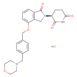 | 异名/同义词 | (3S)-3-(4-((4-((MORPHOLIN-4-YL)METHYL)PHENYL)METHOXY)-1-OXO-1,3-DIHYDRO-2H-ISOINDOL-2-YL)PIPERIDINE-2,6-DIONE MONOHYDROCHLORIDE 2,6-PIPERIDINEDIONE, 3-(1,3-DIHYDRO-4-((4-(4-MORPHOLINYLMETHYL)PHENYL)METHOXY)-1-OXO-2H-ISOINDOL-2-YL)-, HYDROCHLORIDE (1:1), (3S)- CC-220 HYDROCHLORIDE IBERDOMIDE HYDROCHLORIDE IBERDOMIDE HYDROCHLORIDE [USAN] IBERDOMIDE HYDROCHLORIDE [WHO-DD]